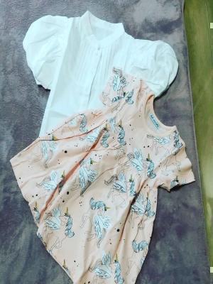 以前上の子に頂いたユニコーンTシャツと白ブラウスのサイズ違いを、下の子にも!