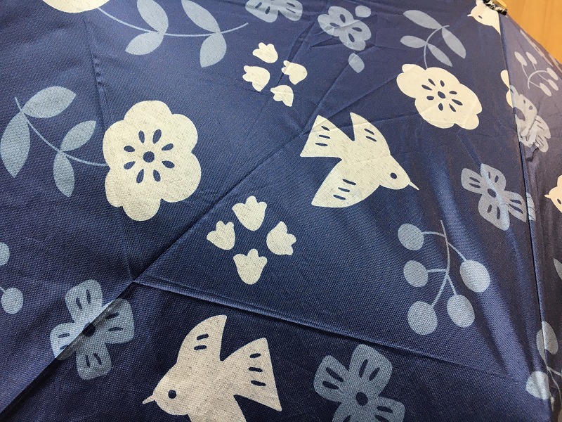 | コメント | 傘 THE KIYOTO KURROCHIKU 晴雨兼用折傘(花と取) 紺地に花と鳥の可愛い傘です。 雨が楽しくなるような傘ですね |