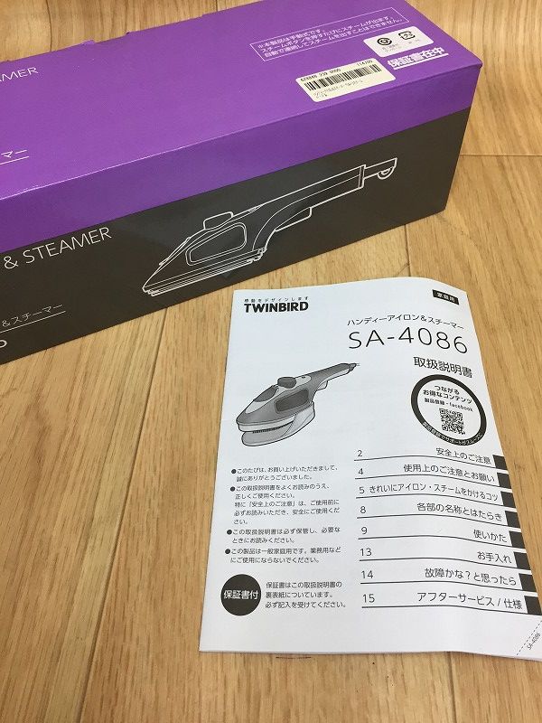 美品 箱、説明書付 TWINBIRD ハンディアイロン&スチーマー SA-4086 パープル